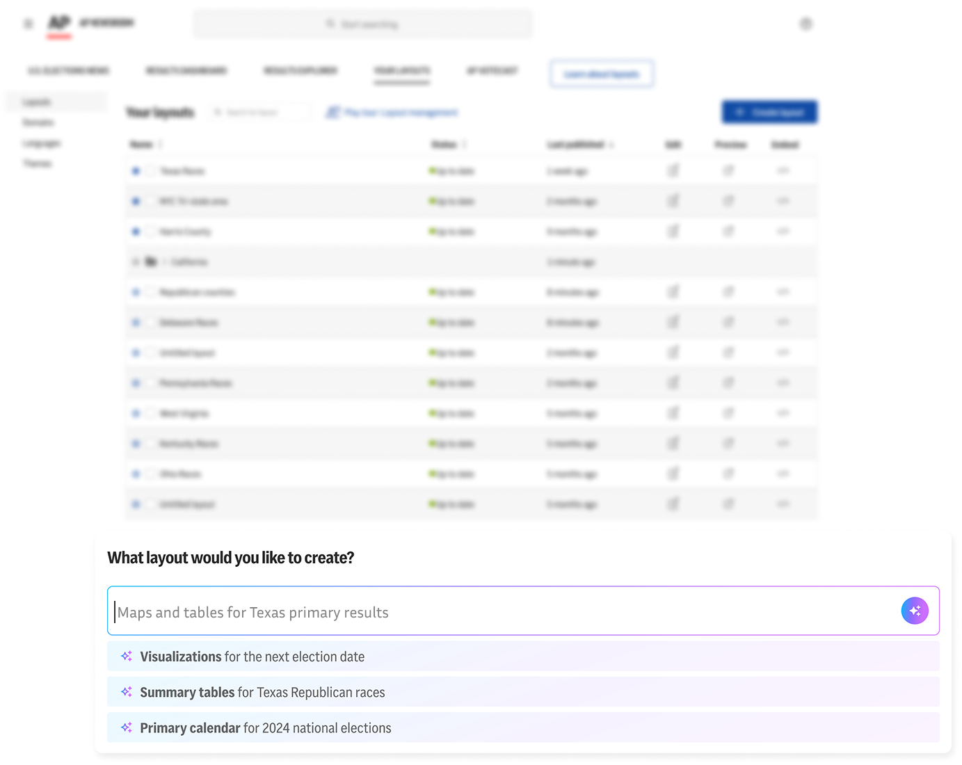Of the three directions explored, the AI Layout Builder has the highest immediate impact with the lowest risk. Editors can type out a prompt, and AI generates a visual grid of suggested layouts tailored to their election context, getting them the majority of the way there instantly.